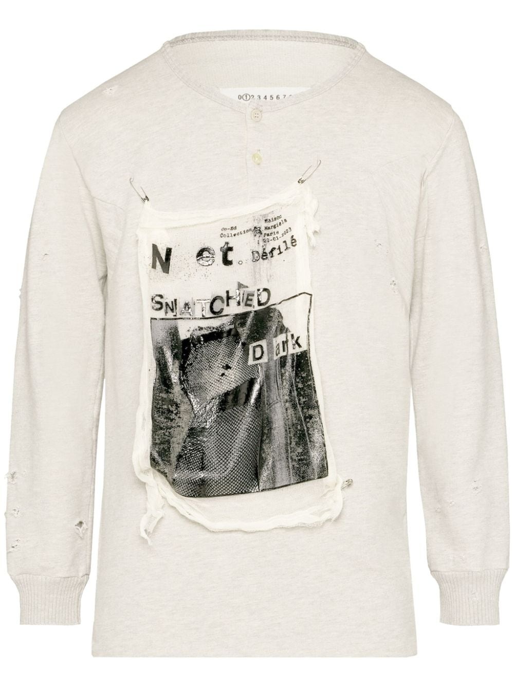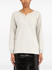 Invitation distressed cotton sweatshirt Highlights - Grey - Cotton - Distressed effect - Round neck - Short front button fastening - Long sleeves - Applique detail - Graphic print to the rear - Straight hem Made in Italy Composition Cotton 100% Washing instructions Read Manufacturer Guidelines