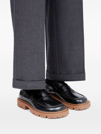 Ivy leather loafers These black Ivy loafers bestow a timeless allure upon Maison Margiela's iconic aesthetic. They're crafted from Italian leather in a traditional penny-slot silhouette, subtly adorned with the label's distinctive single-stitch logo on the back. Highlights - Black - Calf leather - Smooth grain - Signature single-stitch logo - Penny slot - Round toe - Branded leather insole - Ridged rubber sole Made in Italy Composition Outer: Calf Leather 100% Lining: Calf Leather 100% Sole: Polyurethane 100% SIZE & FIT FittingInformation This piece fits large – take one size down