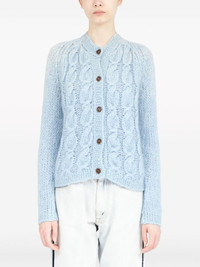 knitted mohair-blend cardigan Highlights - Light blue - Mohair blend - Knitted construction - Chunky cable knit - Faded effect - Crew neck - Extra-long sleeves - Front button fastening - Ribbed cuffs and hem Imported Composition Mohair 80%, Polyamide 20% Washing instructions Read Manufacturer Guidelines