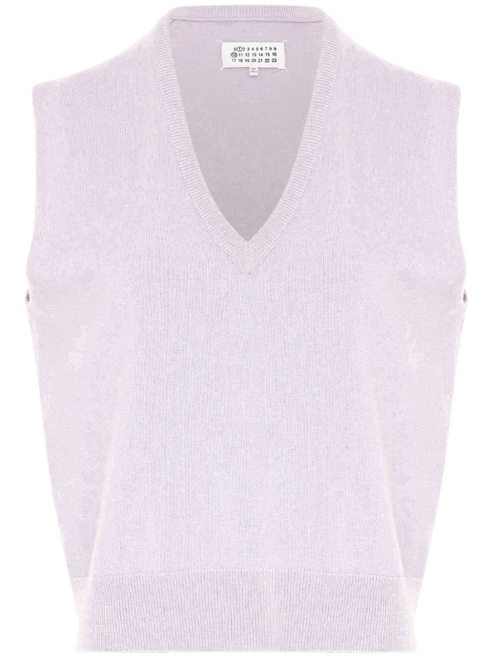 knitted vest Highlights - Light grey - Ribbed v-neck - Sleeveless - Straight hem - Pull-on style Made in Italy Composition Virgin Wool 100% SIZE & FIT FittingInformation Designed for a relaxed fit, this piece allows for comfort and movement when worn Made with a midweight knit, this piece offers some stretch
