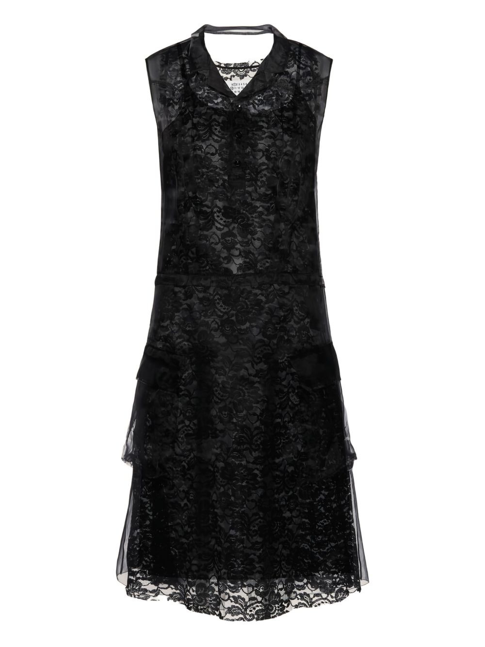 lace-trimmed pocket mini dress Highlights - Black - Sleeveless - Lace trim - Button fastening - Layered design - Flap pockets Made in Italy Composition Polyester 100% Washing instructions Read Manufacturer Guidelines
