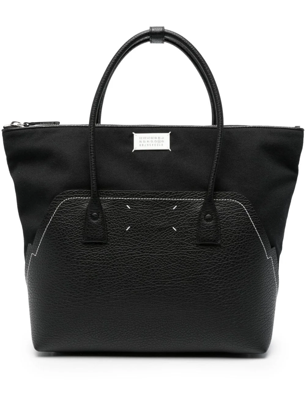 large 5AC leather bag Highlights - Black - Canvas/calf leather - Grained texture - Contrast stitching - Signature numbers motif - Signature four-stitch logo - Internal logo stamp - Top zip fastening - Two rolled top handles - Metal feet - Main compartment - Internal zip-fastening pocket - Canvas lining - This piece comes complete with a protective dust bag. Made in Italy Composition Outer: Calf Leather 100%, Brass 100%, Cotton 79%, Polyester 15%, Other fibres 6% Lining: Calf Leather 100% SIZE & FIT Model measurements Height 6 ft 2 in(1.88 m) Bust/Chest 36.61 in(93 cm) Hips 35.82 in(91 cm) Waist 27.95 in(71 cm) Measurement DEPTH 4.72 in(12 cm) HANDLE 9.44 in(24 cm) HEIGHT 12.59 in(32 cm) WIDTH 16.92 in(43 cm)