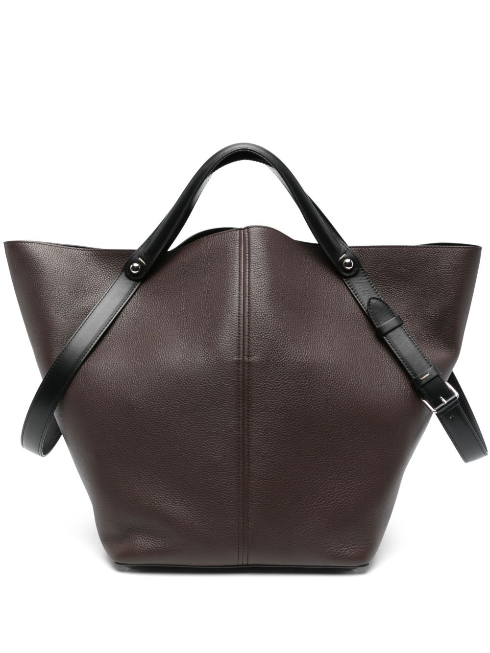 large Dress-Age tote bag Highlights - Coffee brown - Magnetic fastening - Two top handles - Two adjustable shoulder straps - This piece comes complete with a protective dust bag Made in Italy Composition Outer: Calf Leather 100%, Brass 100% Lining: Sheepskin 100%, Polyester 100%, Calf Leather 100% SIZE & FIT Model measurements Height 5 ft 10 in(1.78 m) Bust/Chest 33.46 in(85 cm) Hips 36.22 in(92 cm) Waist 23.22 in(59 cm) Measurement DEPTH 9.84 in(25 cm) HEIGHT 13.77 in(35 cm) WIDTH 21.25 in(54 cm)