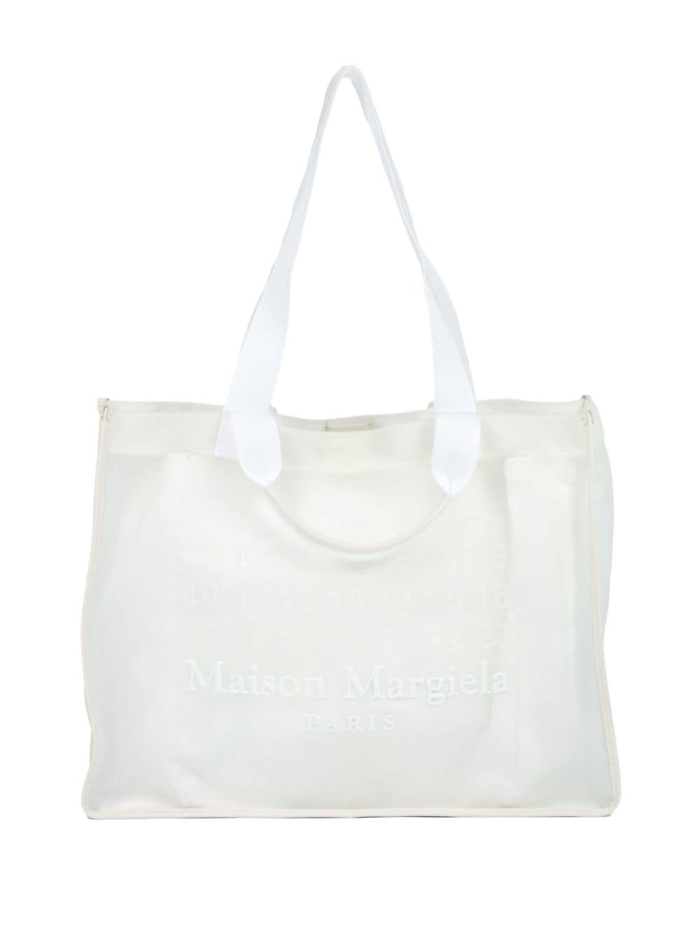 large logo-embroidered tote bag Highlights - White - Embroidered logo to the front - Two top handles - Magnetic fastening - Main compartment - Multiple internal slip pockets Made in Italy Composition Outer: Polyamide 100%
