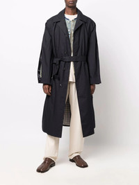 layered cotton trench coat Maison Margiela's deconstructionist ethos is evidenced by this trench coat. Here, the classic wardrobe staple is layered over a denim jacket, creating a signature hybrid design. Made in Italy Composition Outer: Cotton 100% Lining: Cotton 100%, Acetate 65%, Viscose 35% SIZE & FIT Model measurements Height 6 ft 1 in(1.85 m) Bust/Chest 31.88 in(81 cm) Hips 33.07 in(84 cm) Waist 26.77 in(68 cm) FittingInformation This piece fits true to size. We recommend you get your regular size Cut for a loose fit Made with a mid-weight non-stretch fabric Washing instructions Dry Clean Only