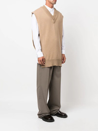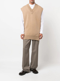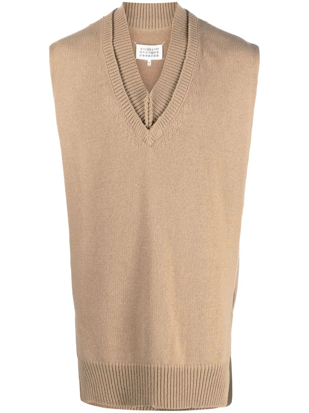 layered V-neck vest Highlights - Brown - Linen-wool blend - Ribbed detailing - Layered details - V-neck - Sleeveless - Straight hem Made in Italy Composition Wool 46%, Linen/Flax 31%, Cotton 23% SIZE & FIT Model measurements Height 5 ft 10 in(1.78 m) Bust/Chest 33.07 in(84 cm) Hips 35.82 in(91 cm) Waist 25.98 in(66 cm) FittingInformation This piece fits true to size. We recommend you get your regular size Cut for a loose fit Made with a mid-weight fabric