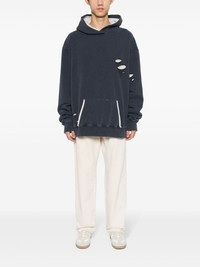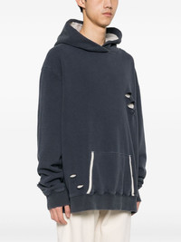 layered distressed cotton hoodie Highlights - Navy blue/beige - Cotton - Jersey texture - Layered design - Distressed finish - Classic hood - Drop shoulder - Long sleeves - Front pouch pocket - Signature single-stitch logo - Ribbed cuffs and hem Made in Italy Composition Cotton 100% SIZE & FIT Model measurements Height 6 ft 2 in(1.87 m) Bust/Chest 33.46 in(85 cm) Hips 36.22 in(92 cm) Waist 29.52 in(75 cm) Measurement CHEST 59.05 in(150 cm) SLEEVE LENGTH 27.16 in(69 cm) LENGTH 26.77 in(68 cm) FittingInformation Designed to be unstructured, offering a loose fit throughout Made from a midweight non-stretch fabric, this piece offers minimal elasticity when worn This piece fits true to size – take your usual size Washing instructions Machine Wash