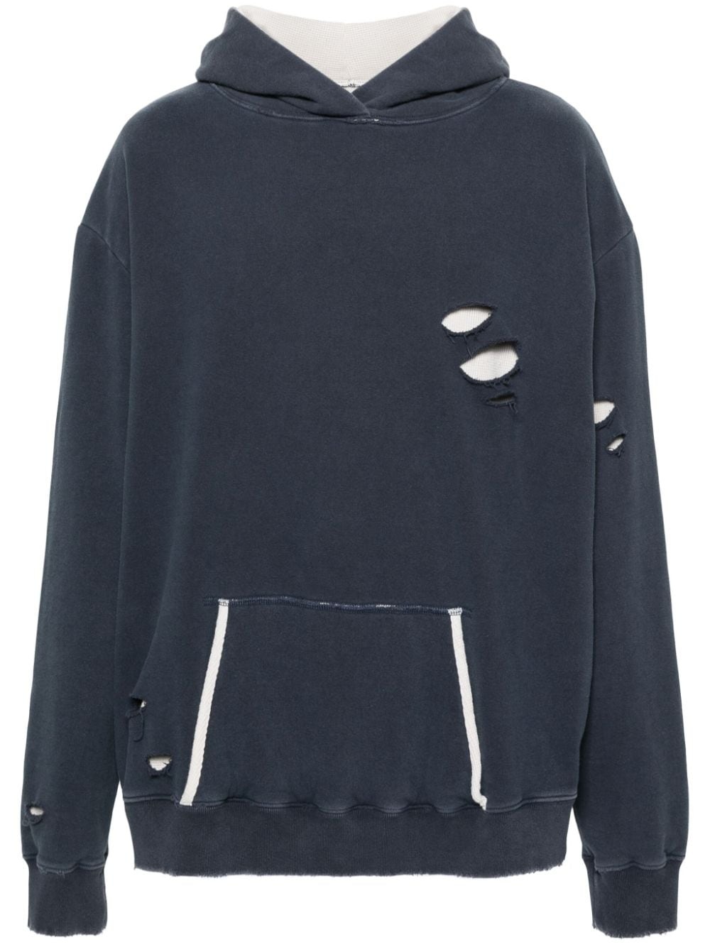 layered distressed cotton hoodie