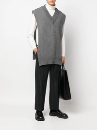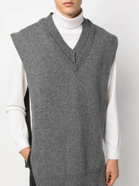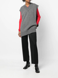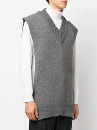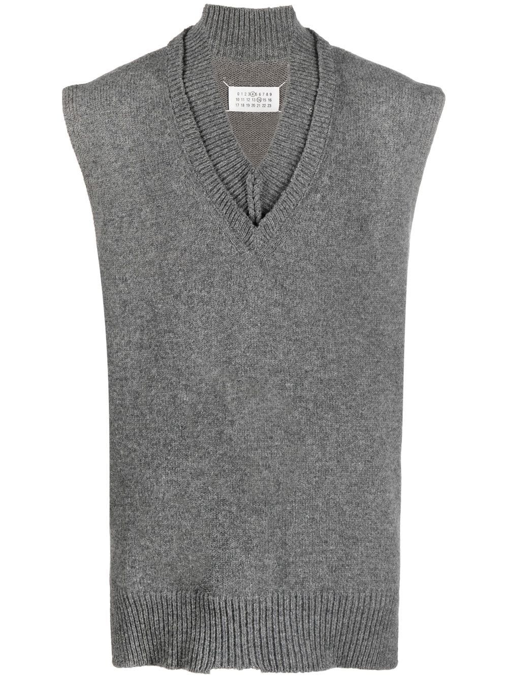 layered knitted vest Highlights - Grey - Knitted construction - V-neck - Ribbed detailing - Sleeveless - Signature four-stitch logo Made in Italy Composition Wool 46%, Linen/Flax 31%, Cotton 23% SIZE & FIT Model measurements Height 5 ft 11 in(1.8 m) Bust/Chest 31.49 in(80 cm) Hips 35.82 in(91 cm) Waist 24.8 in(63 cm) Measurement LENGTH 27.95 in(71 cm) Shoulder Width 20.86 in(53 cm)