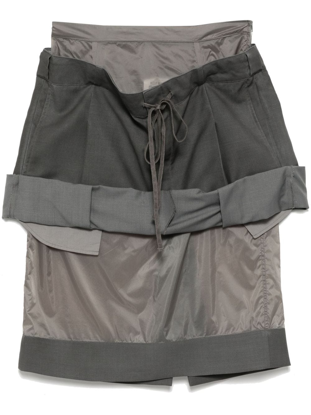 layered midi skirt Highlights - Dark grey - Mohair-wool blend - Side zip fastening - Drawstring waist - Belt loops - Layered design - Two side inset pockets - Rear button-fastening pocket - Rear welt pocket - Signature four-stitch logo - Rolled trim - Mid-length Made in Italy Composition Lining: Cotton 100% Outer: Mohair 60%, Wool 40% Polyamide 100% SIZE & FIT Model measurements Height 5 ft 10 in(1.79 m) Bust/Chest 31.88 in(81 cm) Hips 36.22 in(92 cm) Waist 24.4 in(62 cm) FittingInformation This midi-length skirt is intended to be worn just below the waist The tie fastening gives an adaptable and personalised fit Made from a midweight non-stretch fabric