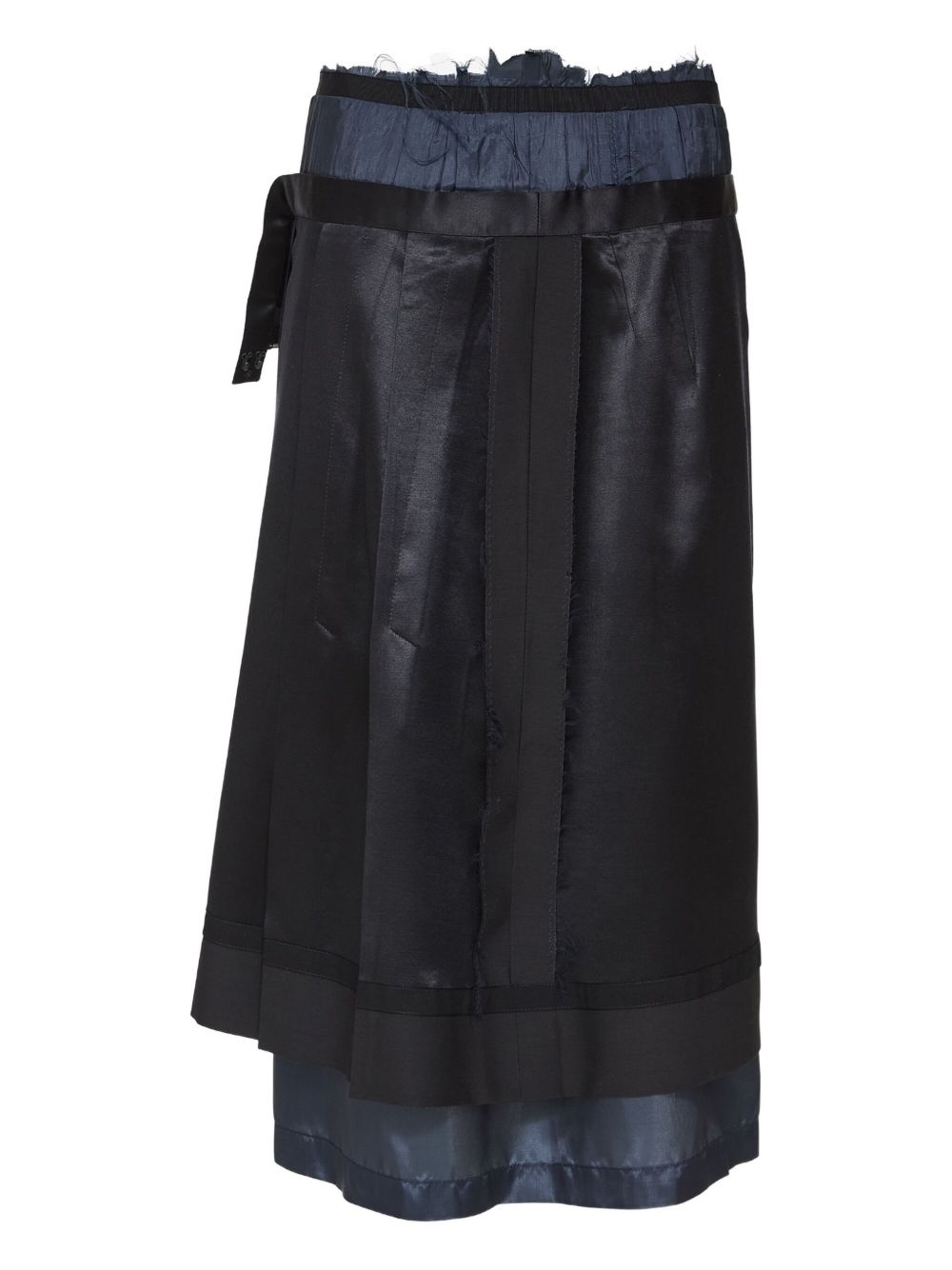 layered midi skirt Highlights - Black - Elasticated waistband - Frayed detailing - Straight hem - Mid-length Made in Italy Composition Wool 70%, Silk 30% Washing instructions Read Manufacturer Guidelines
