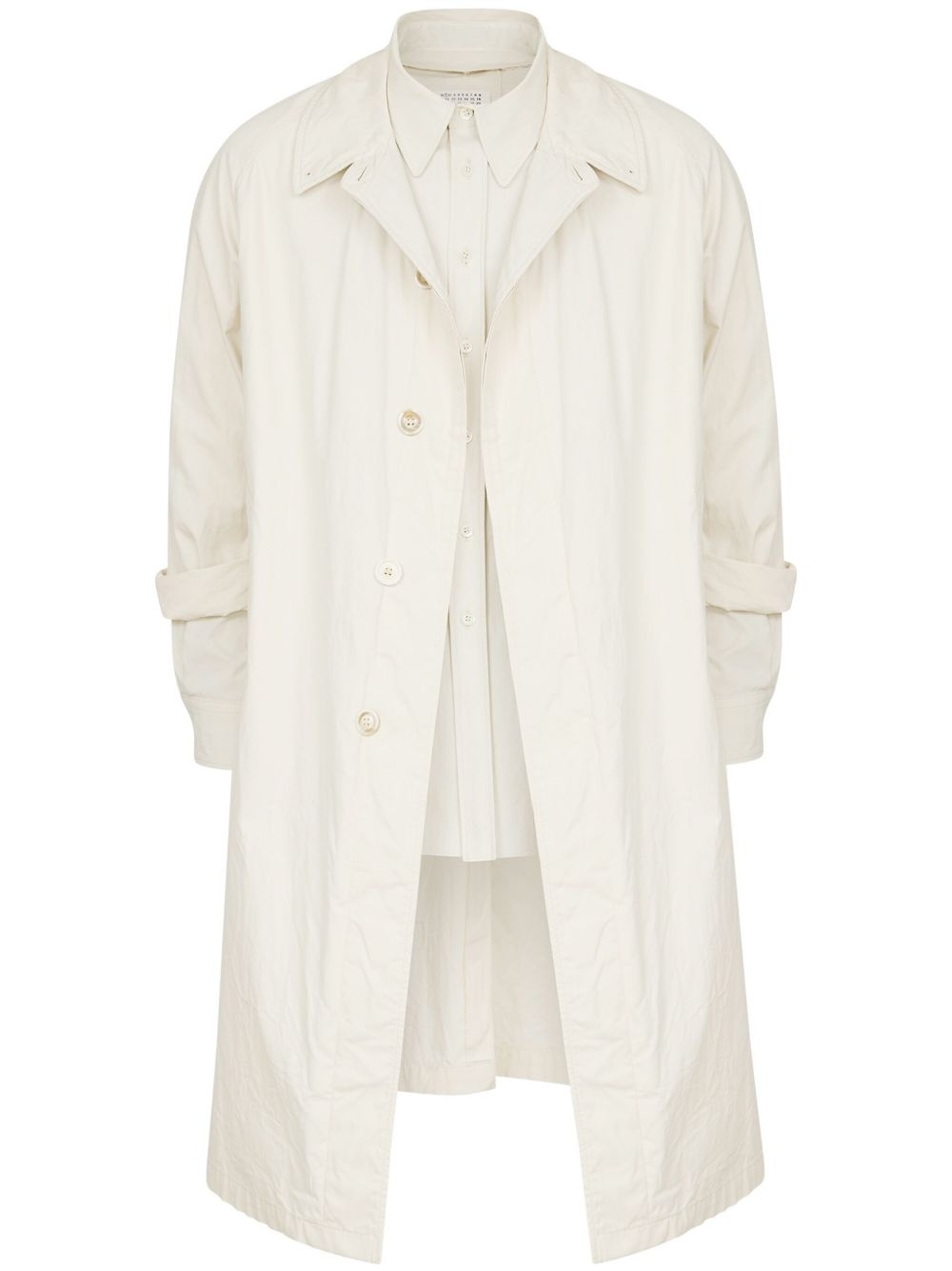 layered trench coat Highlights - White - Cotton - Layered design - Notched lapels - Concealed fly and button fastening - Long sleeves - Buttoned cuffs - Central rear vent - Straight hem Made in Italy Composition Cotton 100%