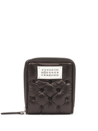 leather zip around wallet Highlights - Coffee brown - Lambskin - Smooth grain - Padded design - Signature numbers motif - Logo patch to the front - All-around zip fastening - Internal logo stamp - Internal card slots - Coin pocket Made in Italy Composition Outer: Lambskin 100%