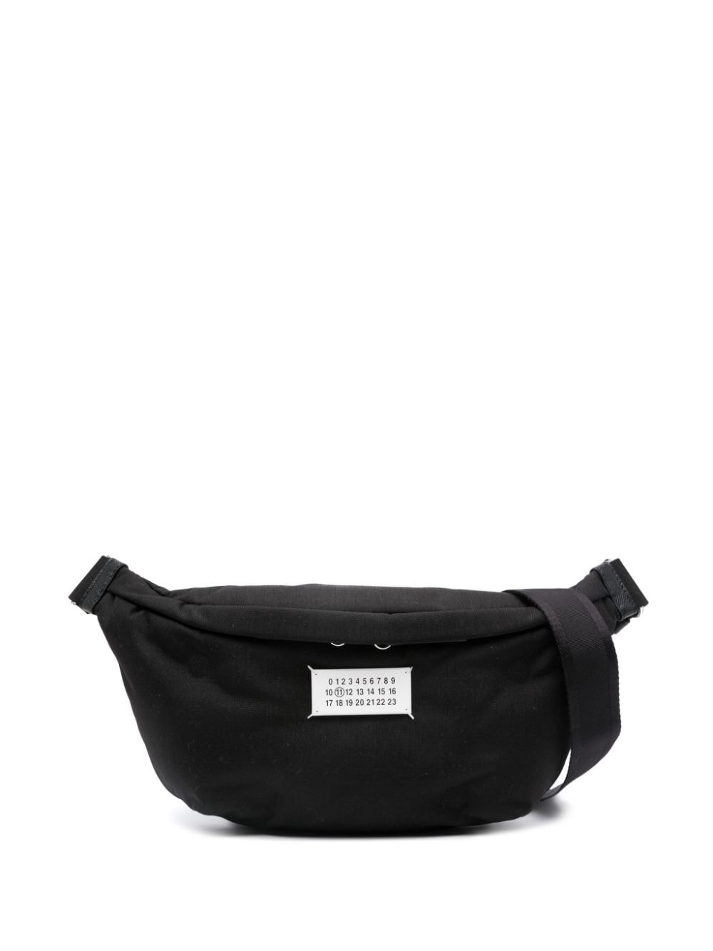 logo-applique belt bag Highlights - Black - Twill weave - Leather trim - Padded design - Silver-tone hardware - Applique logo to the front - Adjustable waist strap - Rear zip-fastening pocket - Main compartment - Internal zip-fastening pocket - Internal applique logo - Full lining - Front two-way zip fastening - This piece comes complete with a protective dust bag. Made in Italy Composition Outer: Polyamide 100%, Calf Leather 100%, Zinc 94%, Aluminium 4%, Copper 2% Lining: Polyester 100%, Calf Leather 100% SIZE & FIT Measurement DEPTH 3.93 in(10 cm) HEIGHT 6.29 in(16 cm) STRAP 472.44 in(1200 cm) WIDTH 14.17 in(36 cm)