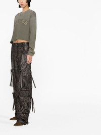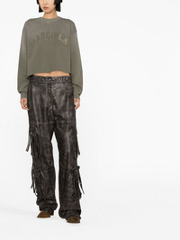 logo-patch cropped sweatshirt Crafted in a classic cotton construction, this olive green sweatshirt by Maison Margiela is embroidered with the label's name at the front and a signature four-stitch motif at the back for a branded finish. Highlights - Olive green - Cotton - Faded effect - Logo patch to the front - Drop shoulder - Signature four-stitch logo - Long sleeves - Raw-cut edge Made in Italy Composition Outer: Cotton 100% SIZE & FIT Model measurements Height 5 ft 10 in(1.78 m) Bust/Chest 29.92 in(76 cm) Hips 34.64 in(88 cm) Waist 23.62 in(60 cm)