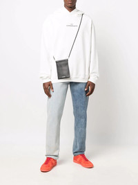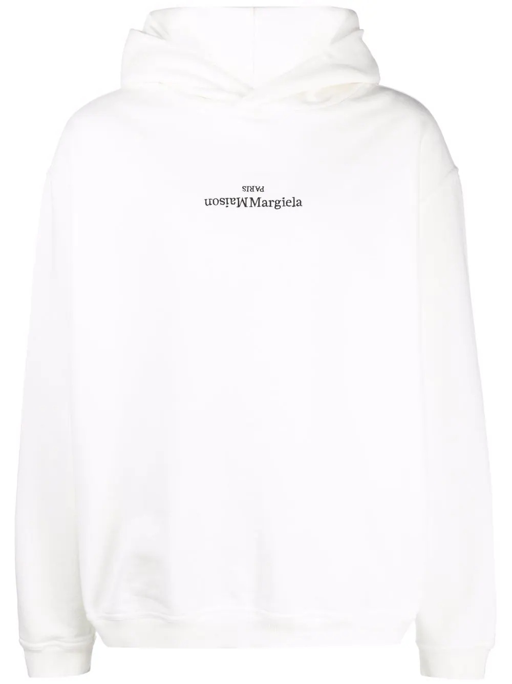 logo-embroidered cotton hoodie Maison Margiela showcases the brand's minimalist yet innovative design style in this drawstring hoodie design. Featuring a logo print across the front in a contrasting colourway, it is placed upside down, adding an eye-catching element to this casual wear garment. Highlights - White - Cotton - Logo print to the front - Drawstring hood - Drop shoulder - Long sleeves - Straight hem Imported Composition Cotton 100% SIZE & FIT Model measurements Height 6 ft 1 in(1.86 m) Bust/Chest 36.61 in(93 cm) Hips 36.61 in(93 cm) Waist 29.92 in(76 cm) Measurement CHEST 55.11 in(140 cm) SLEEVE LENGTH 25.59 in(65 cm) Shoulder Width 23.62 in(60 cm) FittingInformation Designed for a regular fit, offering a comfortable loose fit throughout the body Made from a midweight non-stretch fabric, this piece offers minimal elasticity when worn This piece fits true to size – take your usual size Washing instructions Machine Wash