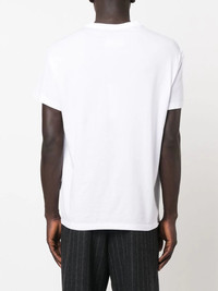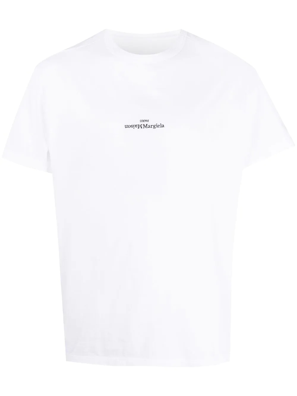distorted-logo cotton T-shirt Maison Margiela's innovative yet minimalist design style is reflected on this short-sleeve T-shirt which features the brand's logo printed partly upside-down, adding a contemporary twist to a classic design. Highlights - White - Cotton - Logo print to the front - Round neck - Short sleeves Imported Composition Cotton 100% SIZE & FIT Model measurements Height 6 ft 1 in(1.86 m) Bust/Chest 34.64 in(88 cm) Hips 35.43 in(90 cm) Waist 27.16 in(69 cm) Measurement CHEST 43.7 in(111 cm) FittingInformation Designed to be unstructured, offering a loose fit throughout Made from a midweight non-stretch fabric, this piece offers minimal elasticity when worn This piece fits true to size – take your usual size Washing instructions Machine Wash