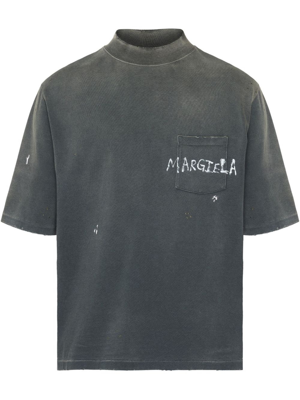 logo-print T-shirt Highlights - Grey - Signature numbers motif - Logo print to the front - Mock neck - Short sleeves Made in Italy Composition Cotton 100%