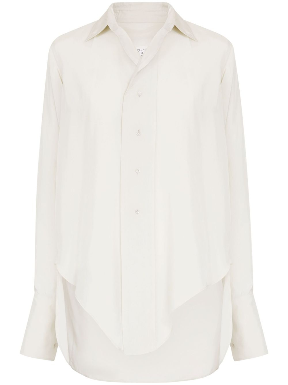 long-sleeve buttoned shirt Highlights - Ivory white - Signature four-stitch logo - Embroidered logo - Front button fastening - Classic collar - Long sleeves - Curved hem Made in Italy Composition Viscose 100%