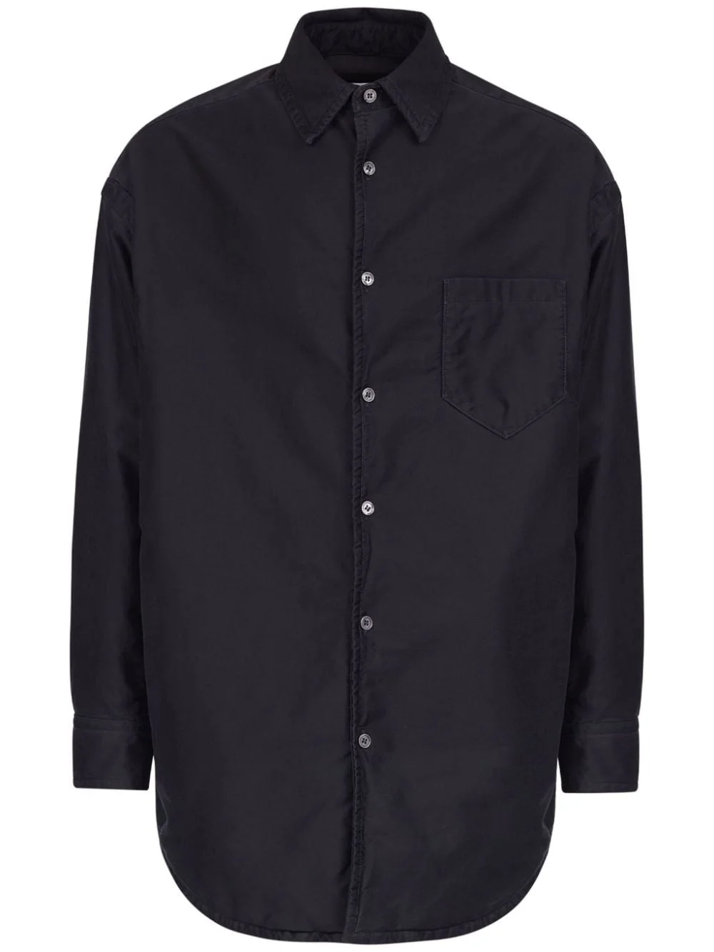 long-sleeve cotton shirt Highlights - Black - Cotton - Poplin texture - Classic collar - Front button fastening - Chest patch pocket - Long sleeves - Drop shoulder - Buttoned cuffs - Curved hem Made In Italy Composition Cotton 100%