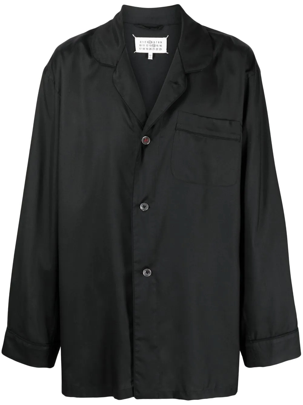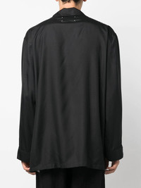 long-sleeve silk shirt Highlights - Black - Silk - Notched lapels - Front button fastening - Long sleeves - Chest patch pocket - When buying this unisex item, keep in mind that it is graded in standard men's sizing Made in Italy Composition Silk 100% SIZE & FIT Model measurements Height 5 ft 9 in(1.75 m) Bust/Chest 32.67 in(83 cm) Hips 36.22 in(92 cm) Waist 24.8 in(63 cm) FittingInformation This piece fits true to size. We recommend you get your regular size Cut for a loose fit Made with a mid-weight non-stretch fabric Measurement CHEST 51.57 in(131 cm) SLEEVE LENGTH 25.19 in(64 cm) LENGTH 32.28 in(82 cm) Washing instructions Dry Clean Only