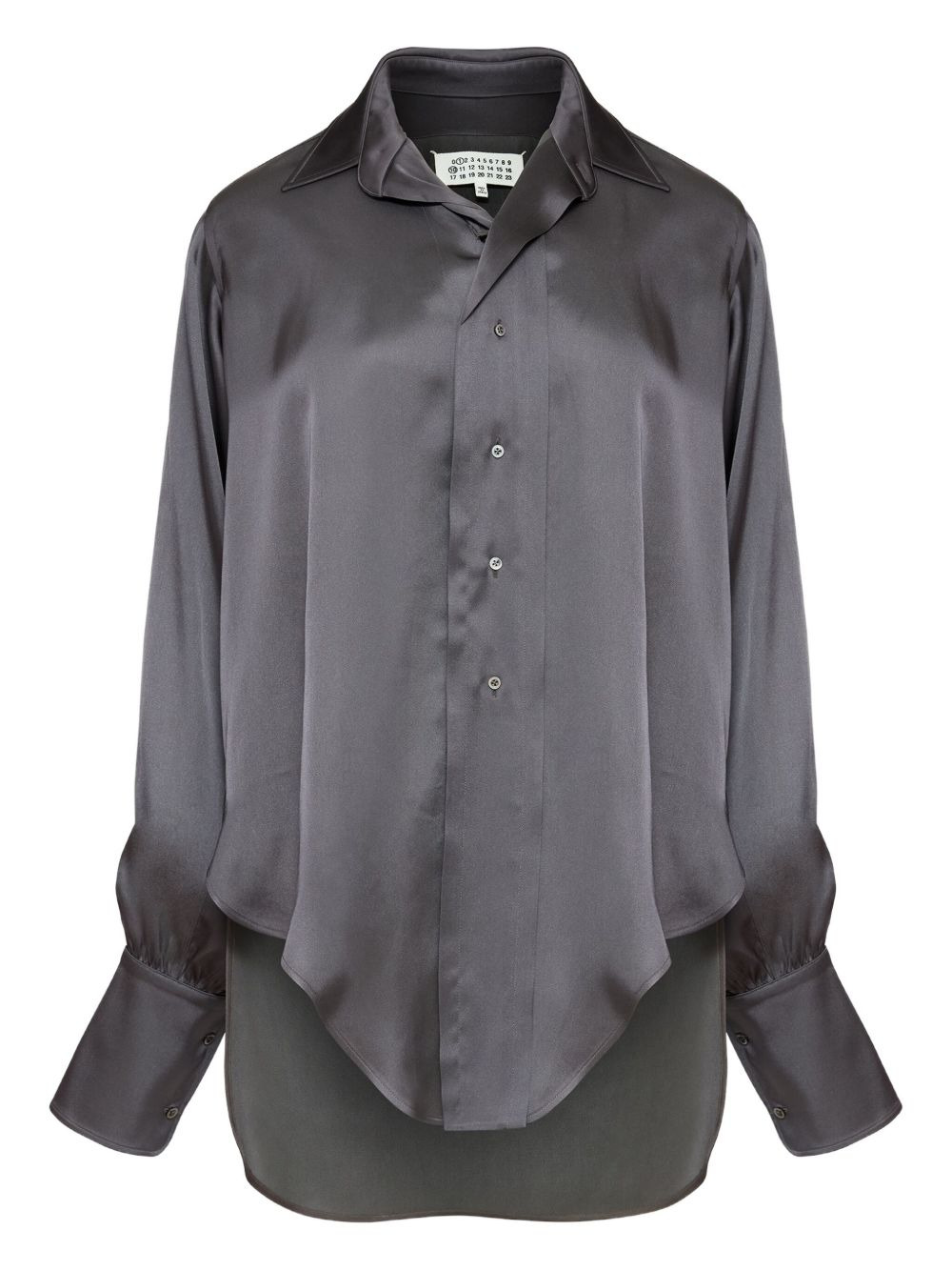 long-sleeved satin shirt Highlights - Dark grey - Satin finish - Button fastening - Long sleeves - High-low hem - Wide buttoned cuffs Made in Italy Composition Acetate 56%, Viscose 44%