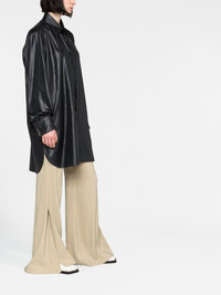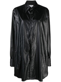 longline faux-leather shirt Delivered in the brand's favoured stygian black tone, this long-sleeved shirt from Maison Margiela is crafted from a crinkled faux-leather construction which accentuates its contemporary aesthetic. Made in Italy Composition Polyester 100% SIZE & FIT Model measurements Height 5 ft 12 in(1.82 m) Bust/Chest 34.25 in(87 cm) Hips 37.79 in(96 cm) Waist 25.19 in(64 cm) FittingInformation Designed for an oversized fit, offering additional room throughout Made from a midweight non-stretch fabric This piece fits true to size – take your usual size