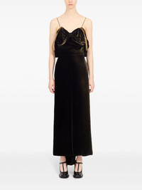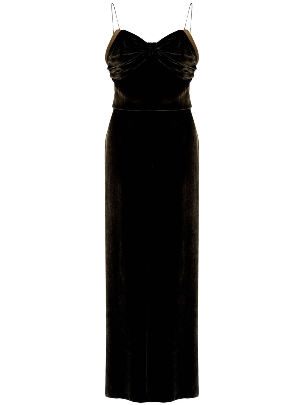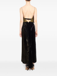 low-back maxi dress Highlights - Olive green - Velvet finish - Ruched detailing - Rear zip fastening - Layered effect - Spaghetti straps - Low back - Asymmetric hem Made in Italy Composition Viscose 82%, Silk 18%