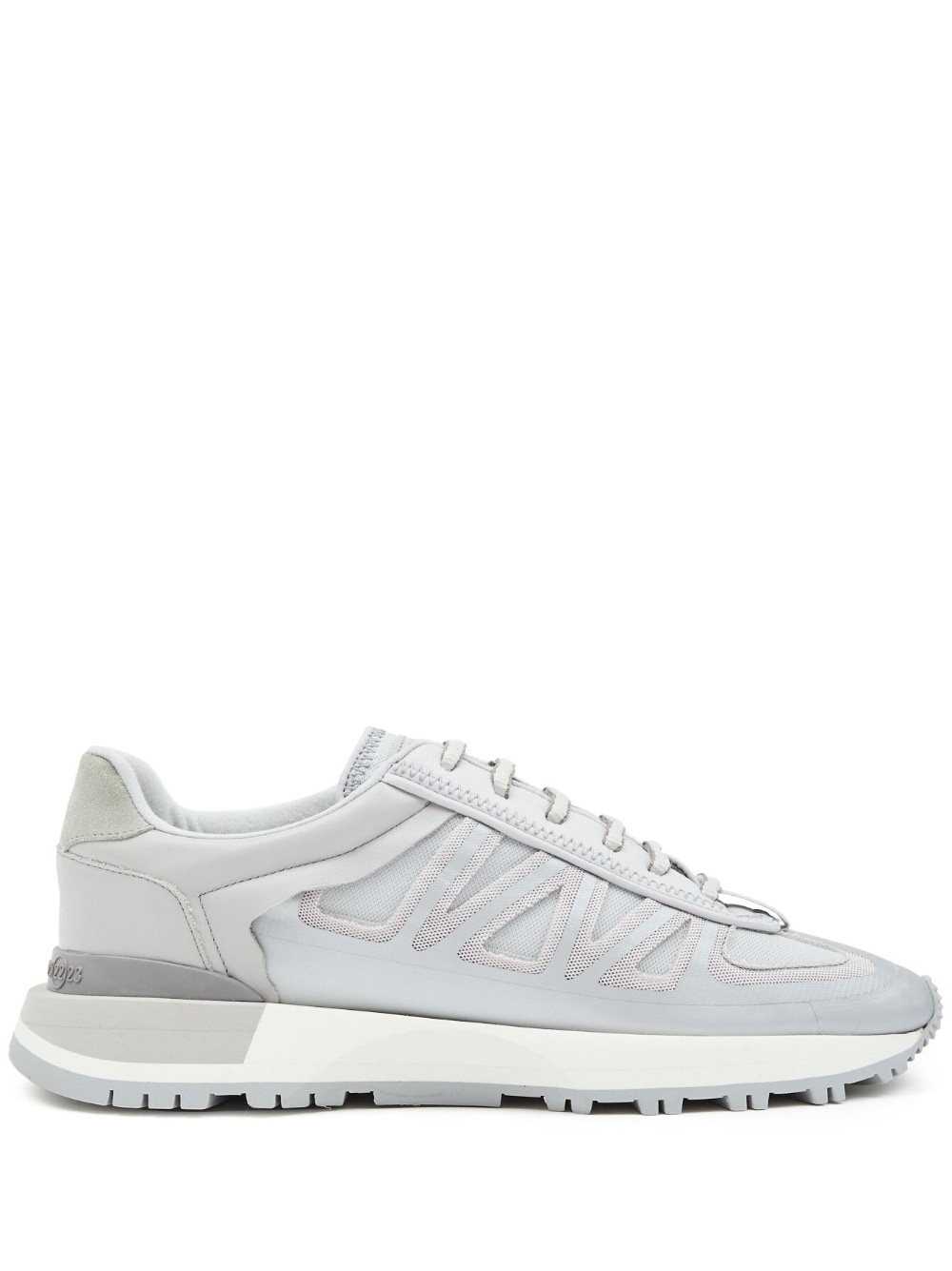low-top sneakers Highlights - Light grey - Off-white - Panelled design - Logo pull-tab at the heel - Chunky rubber sole Made in Italy Composition Outer: CALFSKIN 100%, Mesh 100%, Nylon 100% Lining: Fabric 100% Sole: Rubber 100%