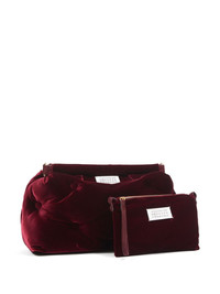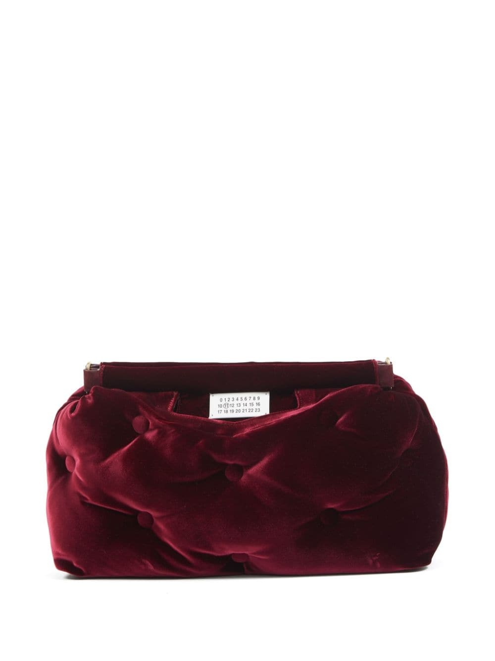 medium Glam Slam shoulder bag Debuted in 2018, Maison Margiela's Glam Slam bag is a brand icon known for its soft, pillowy silhouette, resulting from a quilted design that mimics matelasse. This iteration is crafted in Italy from bordeaux velvet and boasts the iconic numbers motif at the front. The detachable strap allows it be worn on the shoulders or as a clutch. Highlights - Bordeaux red - Velvet - Quilted - Logo patch to the front - Signature numbers motif - Magnetic fastening - Internal logo stamp - Signature four-stitch logo - Internal zip-fastening pocket - Full lining Made in Italy Composition Outer: Metal 100%, Calf Leather 100%, Viscose 65%, Cupro 35% Lining: Polyester 100% SIZE & FIT Measurement DEPTH 5.9 in(15 cm) HEIGHT 11.02 in(28 cm) STRAP 23.62 in(60 cm) WIDTH 16.53 in(42 cm)