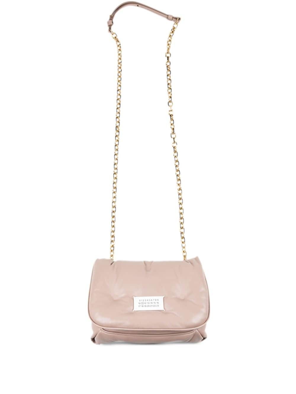 small Glam Slam Flap cross body bag Highlights - Light beige - Nappa leather - Padded design - Foldover top with magnetic fastening - Chain-link shoulder strap - Logo patch to the front Made in Italy Composition Lining: Nylon 100% Outer: Nappa Leather 100% SIZE & FIT Measurement DEPTH 3.54 in(9 cm) HEIGHT 5.7 in(14.5 cm) WIDTH 8.46 in(21.5 cm)