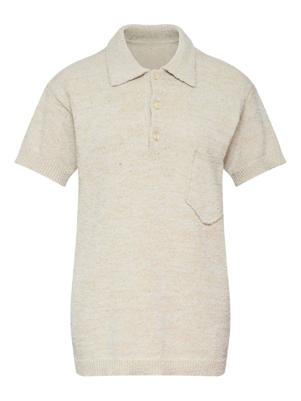 melange-effect polo shirt Highlights - Light beige - Short front button fastening - Chest patch pocket - Short sleeves - Ribbed trim Made in Italy Composition Cotton 84%, Wool 9%, Polyamide 7% Washing instructions Read Manufacturer Guidelines