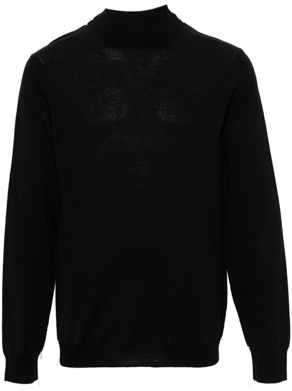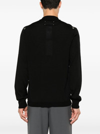 merino-wool sweater Highlights - Black - Merino wool - Fine knit - Signature work-in-progress stitches - Signature four-stitch logo - Crew neck - Long sleeves - Ribbed cuffs and hem Made in Italy Composition Merino 100% SIZE & FIT Model measurements Height 6 ft 1 in(1.85 m) Bust/Chest 35.82 in(91 cm) Hips 37.79 in(96 cm) Waist 29.13 in(74 cm) FittingInformation Designed to be unstructured, offering a loose fit throughout Made with a midweight knit, this piece offers some stretch This piece fits true to size – take your usual size