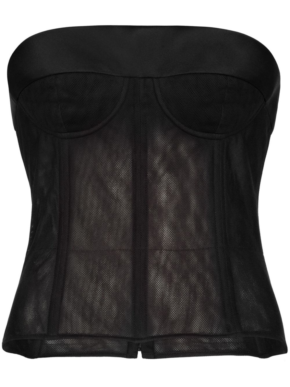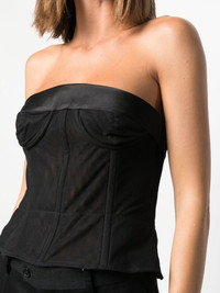 tulle bustier top Highlights - Mesh-panel cropped top from maison margiela featuring black, cotton, silk, mesh panelling, signature four-stitch logo, strapless, rear zip fastening and cropped. Made in Italy Composition Silk 100%, Cotton 100% SIZE & FIT Model measurements Height 5 ft 9 in(1.76 m) Bust/Chest 33.07 in(84 cm) Hips 34.64 in(88 cm) Waist 25.59 in(65 cm) Measurement LENGTH 11.81 in(30 cm) WAIST 29.92 in(76 cm) FittingInformation This piece fits large – you might want to get one size down Cut for a close fit Made with a mid-weight fabric Washing instructions Hand Wash