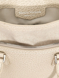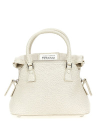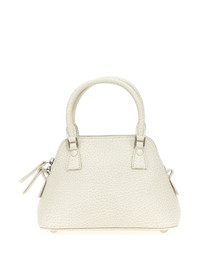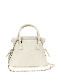 micro 5AC Classique top-handle bag A play on the French word ‘sac’, This 5AC bag from Maison Margiela illustrates the label’s deconstructed aesthetic. Crafted from grained leather, it’s characterised by a canvas panel that mimics the effect of the lining being turned inside out. Highlights - White - Calf leather - Grained texture - Signature numbers motif - Two top handles - Signature four-stitch logo - Detachable chain-link shoulder strap - Concealed magnetic fastening - Main compartment Made in Italy Composition Outer: Calf Leather 100%, Brass 100%, Zinc 94%, Cotton 79%, Polyester 15%, other fibers 6%, Aluminium 4%, Copper 2% Lining: Cotton 100%, Calf Leather 100% SIZE & FIT Measurement DEPTH 3.93 in(10 cm) HANDLE 3.14 in(8 cm) HEIGHT 7.87 in(20 cm) STRAP 19.68 in(50 cm) WIDTH 8.66 in(22 cm)