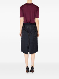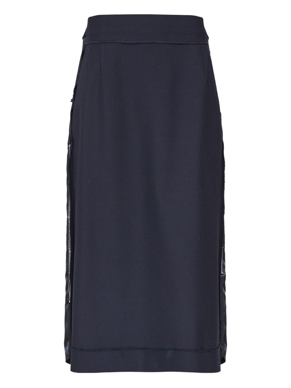 midi skirt Highlights - Midnight blue - Rear button and zip fastening - Rear slit - Signature four-stitch logo Made in Italy Composition Polyester 55%, Wool 45% Washing instructions Read Manufacturer Guidelines