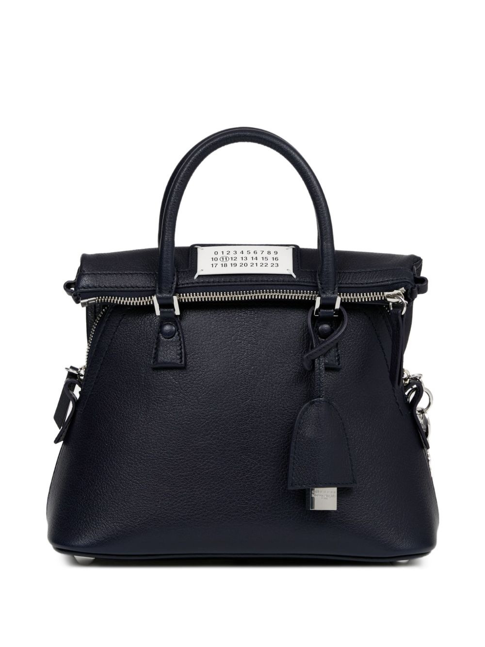 mini 5AC Classique tote bag Highlights - Midnight blue - Top zip fastening - Two rolled top handles - Detachable shoulder strap - Signature numbers motif Made in Italy Composition Outer: Metal 100%, Goat Skin 100% Lining: Polyester 100% SIZE & FIT Measurement DEPTH 5.11 in(13 cm) HEIGHT 7.08 in(18 cm) WIDTH 10.23 in(26 cm) HANDLE 3.93 in(10 cm)