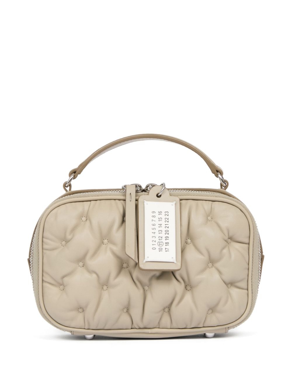 mini Glam Slam tote bag Highlights - Beige - Leather - Smooth grain - Two-way zip fastening - Single flat top handle - Detachable chain-link shoulder strap - Signature numbers motif - Signature four-stitch logo - Metal feet - Embroidered design - Main compartment - Internal logo stamp - Internal patch pocket Made in Italy Composition Outer: Leather 100% SIZE & FIT Measurement DEPTH 1.96 in(5 cm) HEIGHT 4.33 in(11 cm) WIDTH 6.69 in(17 cm)
