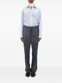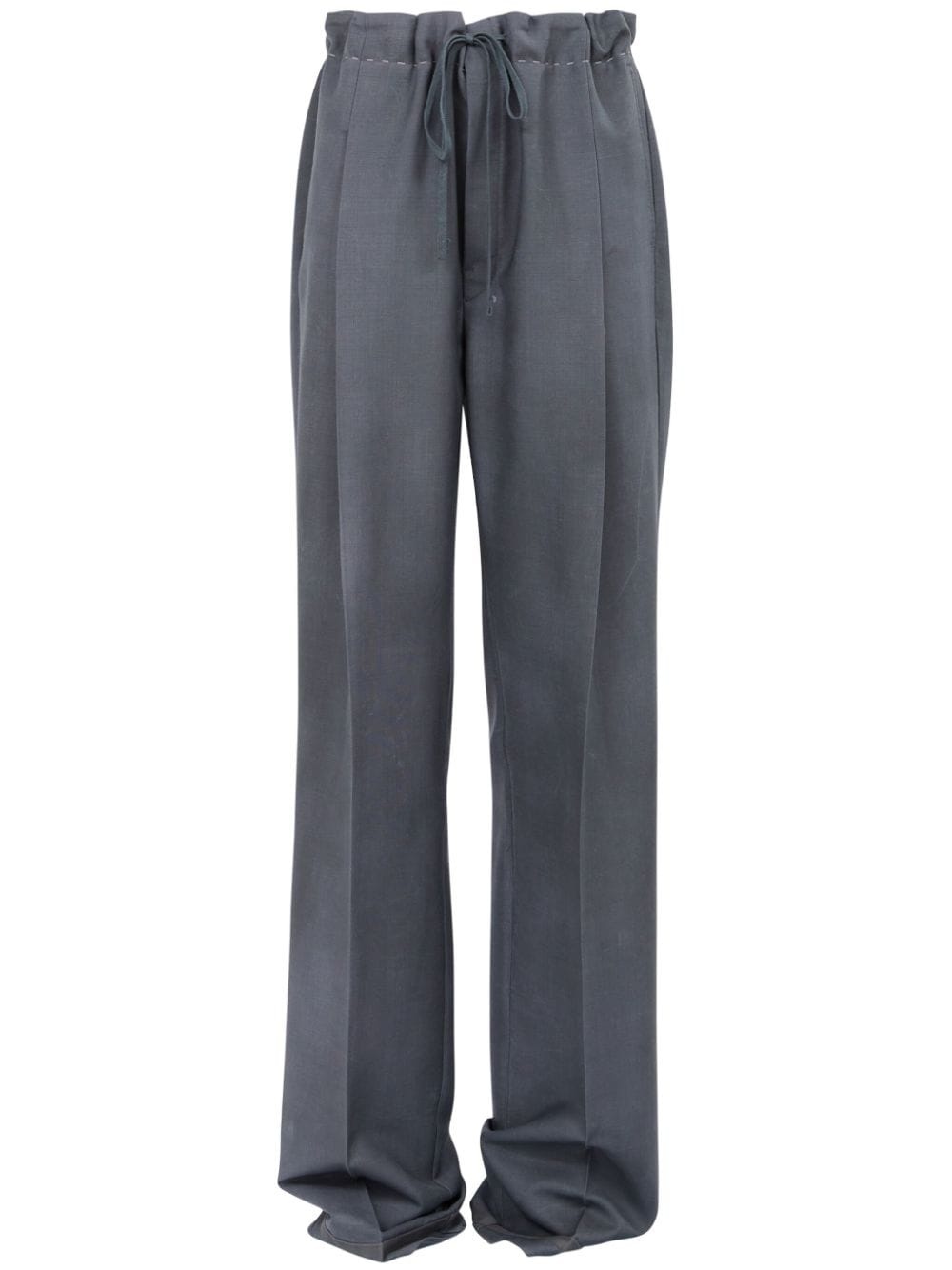 moire-effect straight-leg trousers Highlights - Grey - Wool blend - Signature four-stitch logo - Two rear jetted pockets - Pleat detailing - High-waisted - Drawstring fastening waist - Straight leg Made in Italy Composition Mohair 60%, Wool 40%