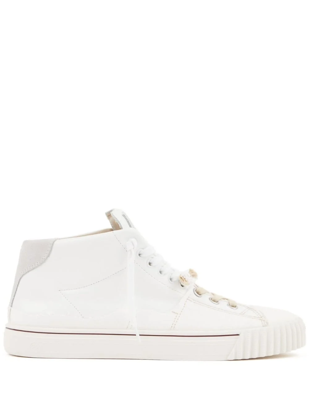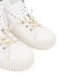 New Evolution high-top sneakers Highlights - Off-white - Calf leather - Suede trim - Signature single-stitch logo - Logo patch at the tongue - Front lace-up fastening - Round toe - Flat rubber sole Made in Italy Composition Outer: CALFSKIN 100%, Suede 100%, Canvas 100% Lining: Fabric 100% Sole: Rubber 100% SIZE & FIT Measurement HEEL 1.18 in(3 cm) Sole height 1.18 in(3 cm)