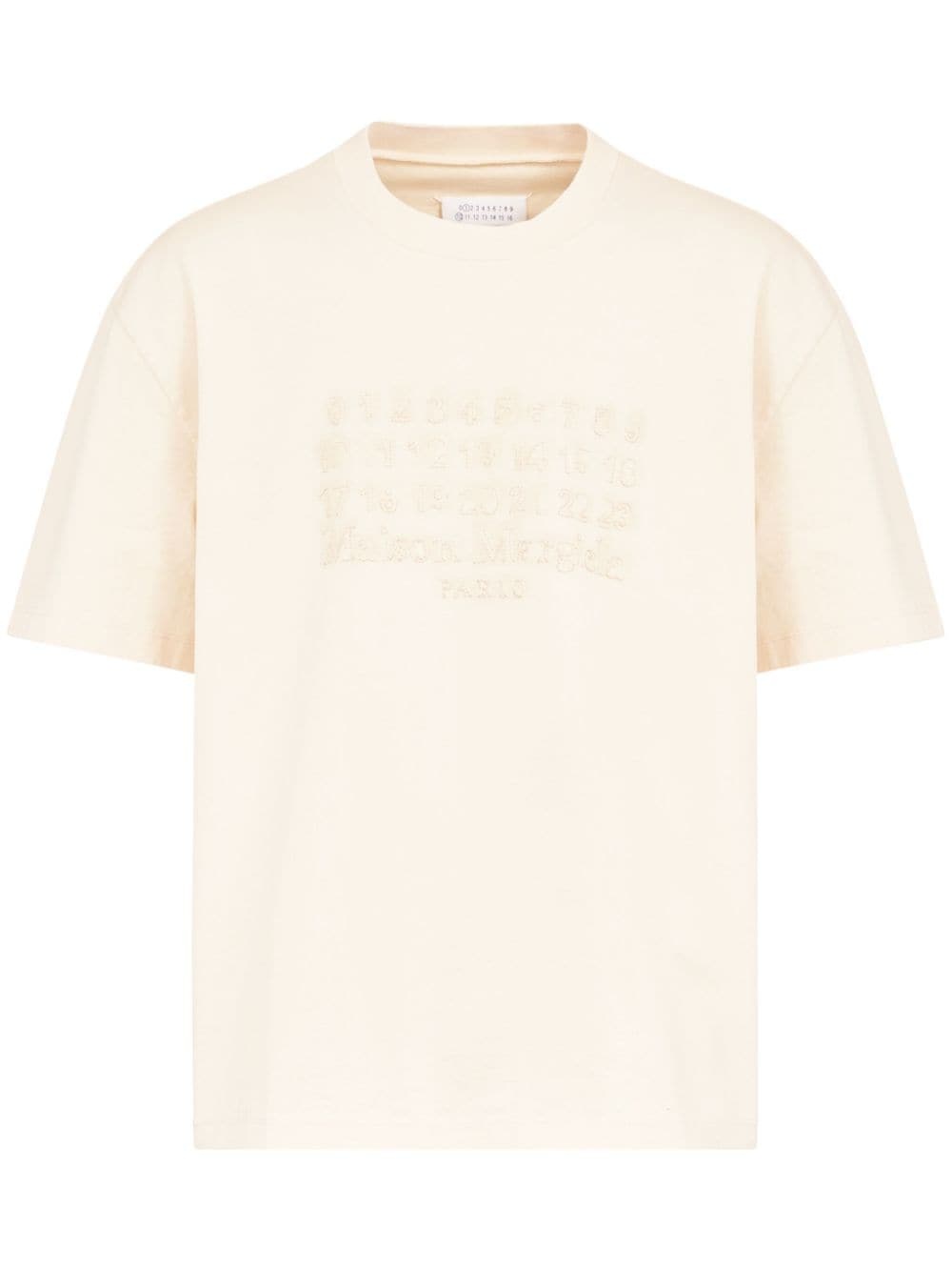 numbers-embroidered cotton T-shirt Highlights - Light beige - Cotton - Jersey texture - Signature numbers motif - Embroidered logo to the front - Crew neck - Drop shoulder - Short sleeves - Straight hem Made in Italy Composition Cotton 100% SIZE & FIT Measurement CHEST 50.98 in(129.5 cm) Shoulder Width 24.48 in(62.2 cm)
