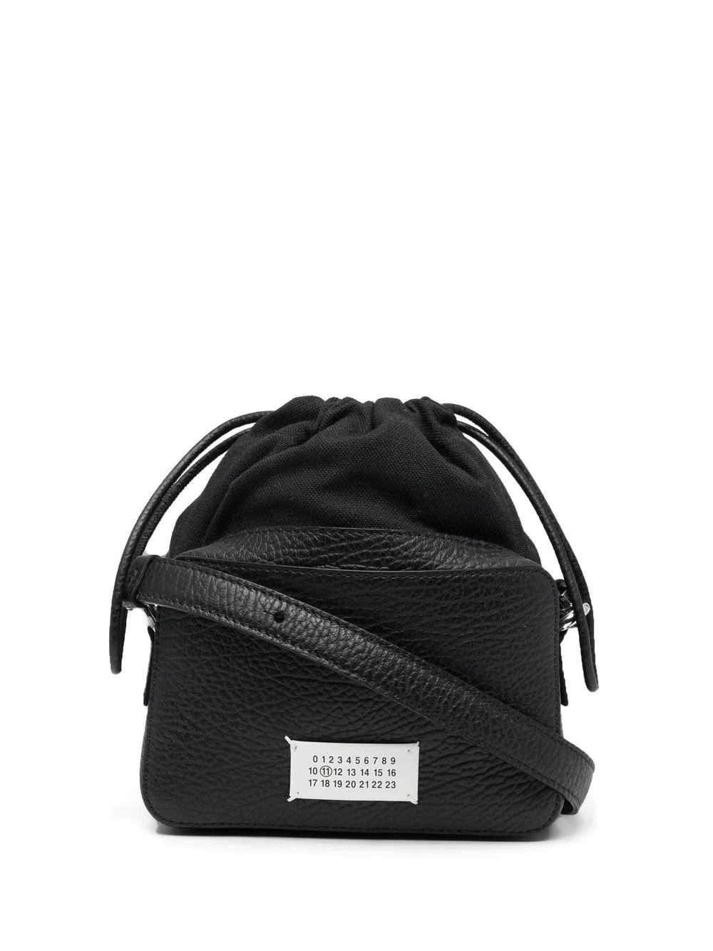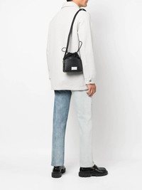 small 5AC camera bag Highlights - Black - Calf leather - Cotton blend - Number patch to the rear - Pebbled texture - Drawstring fastening - Adjustable shoulder straps - Main compartment Made in Italy Composition Outer: Calf Leather 100%, Cotton 79%, Polyester 15%, Other Materials 6% Lining: Cotton 100% SIZE & FIT Model measurements Height 6 ft 3 in(1.9 m) Bust/Chest 38.18 in(97 cm) Hips 37.79 in(96 cm) Waist 32.67 in(83 cm) Measurement DEPTH 2.36 in(6 cm) HEIGHT 7.87 in(20 cm) STRAP 16.92 in(43 cm) WIDTH 6.69 in(17 cm)
