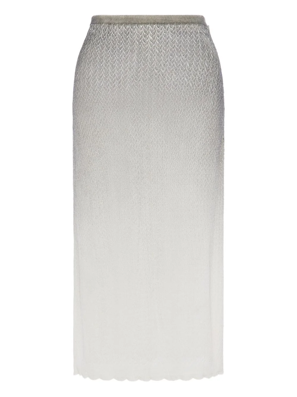 ombre-effect midi skirt Highlights - Grey - Ombre effect - Scallop hem - Knitted construction - Ribbed waistband Imported Composition Wool 62%, Acrylic 26%, Polyamide 12% Washing instructions Read Manufacturer Guidelines