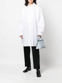 organic-cotton Oxford shirt Highlights - White - Cotton - Oversize frame - Long sleeves - Classic collar - Front button fastening - When buying this unisex item, keep in mind that it is graded in standard men's sizing. Made in Italy Composition Cotton 100% SIZE & FIT Model measurements Height 5 ft 10 in(1.78 m) Bust/Chest 31.49 in(80 cm) Hips 36.22 in(92 cm) Waist 25.59 in(65 cm) FittingInformation This unisex piece is designed for an oversized fit whether you usually select women's or men's sizes Made from a midweight non-stretch fabric Measurement CHEST 55.11 in(140 cm) SLEEVE LENGTH 24.8 in(63 cm) LENGTH 34.64 in(88 cm) WAIST 55.9 in(142 cm) Washing instructions Machine Wash