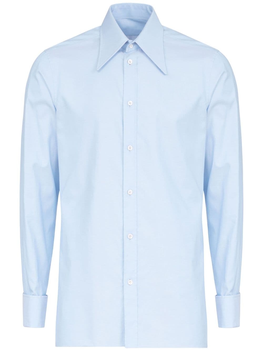 oversized-collar cotton shirt Highlights - Light blue - Cotton - Poplin texture - Oversized pointed collar - Front button fastening - Long sleeves - Buttoned cuffs - Straight hem Made in Italy Composition Cotton 100%