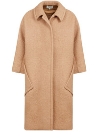oversized effect boucle mohair coat Highlights - Beige - Mohair - Boucle construction - Oversized design - Western-style stitched yoke - Classic collar - Drop shoulder - Concealed press-stud fastening - Long sleeves - Two side patch pockets - Mid-calf length Made In Italy Composition Mohair 100%