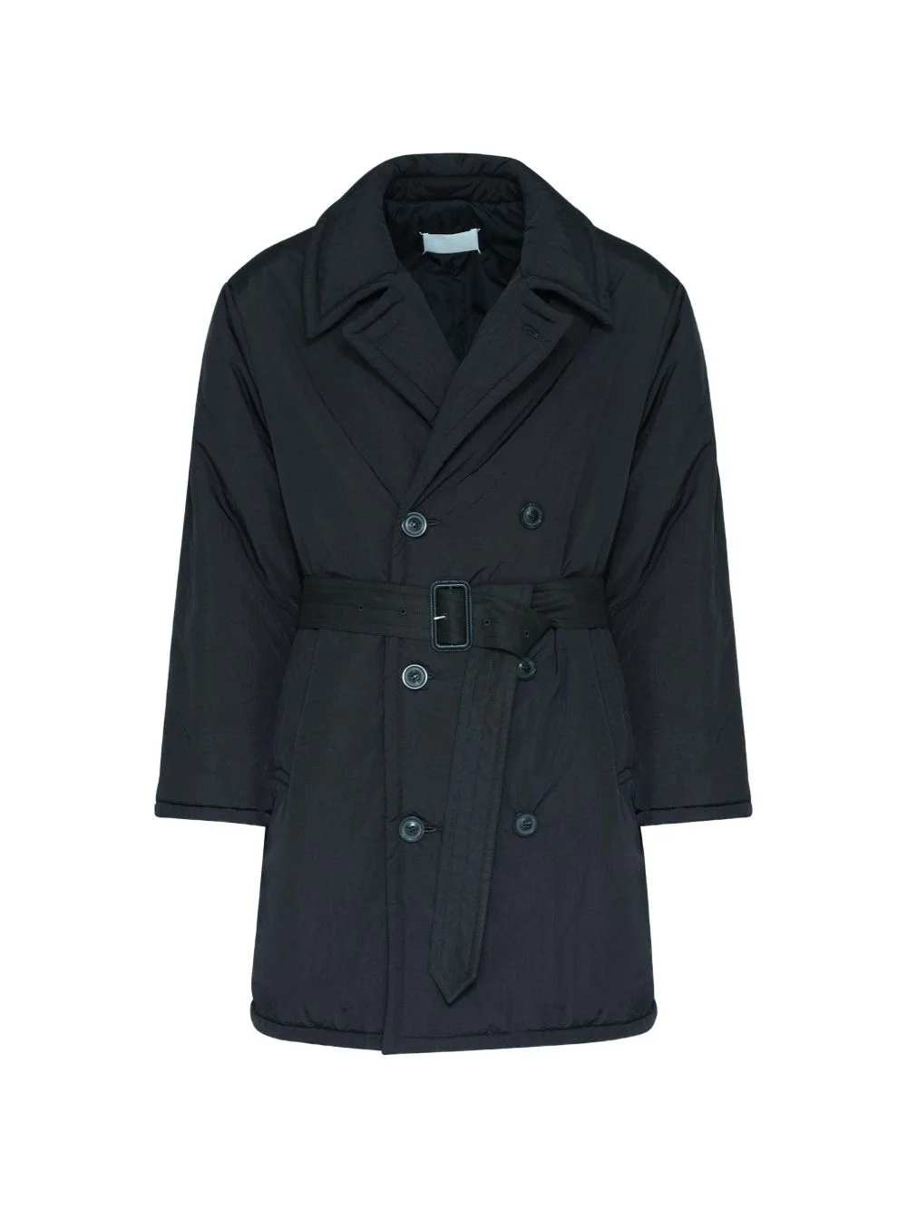 padded belted coat Highlights - Black - Double-breasted - Button closure - Stitches at the back Made in Italy Composition Polyamide 100% Washing instructions Read Manufacturer Guidelines