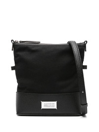 panelled-design cotton-leather crossbody bag