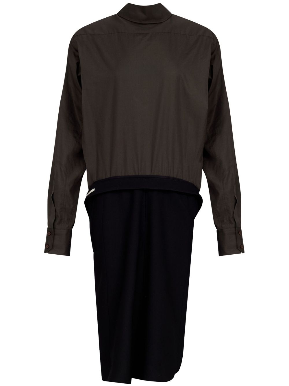 panelled midi dress Highlights - Brown/black - Poplin texture - Panelled design - Rear button fastening - Classic collar - Long sleeves - Buttoned cuffs - Gathered detailing - Pencil silhouette - Asymmetric hem - Mid-length Made in Italy Composition Cotton 100%