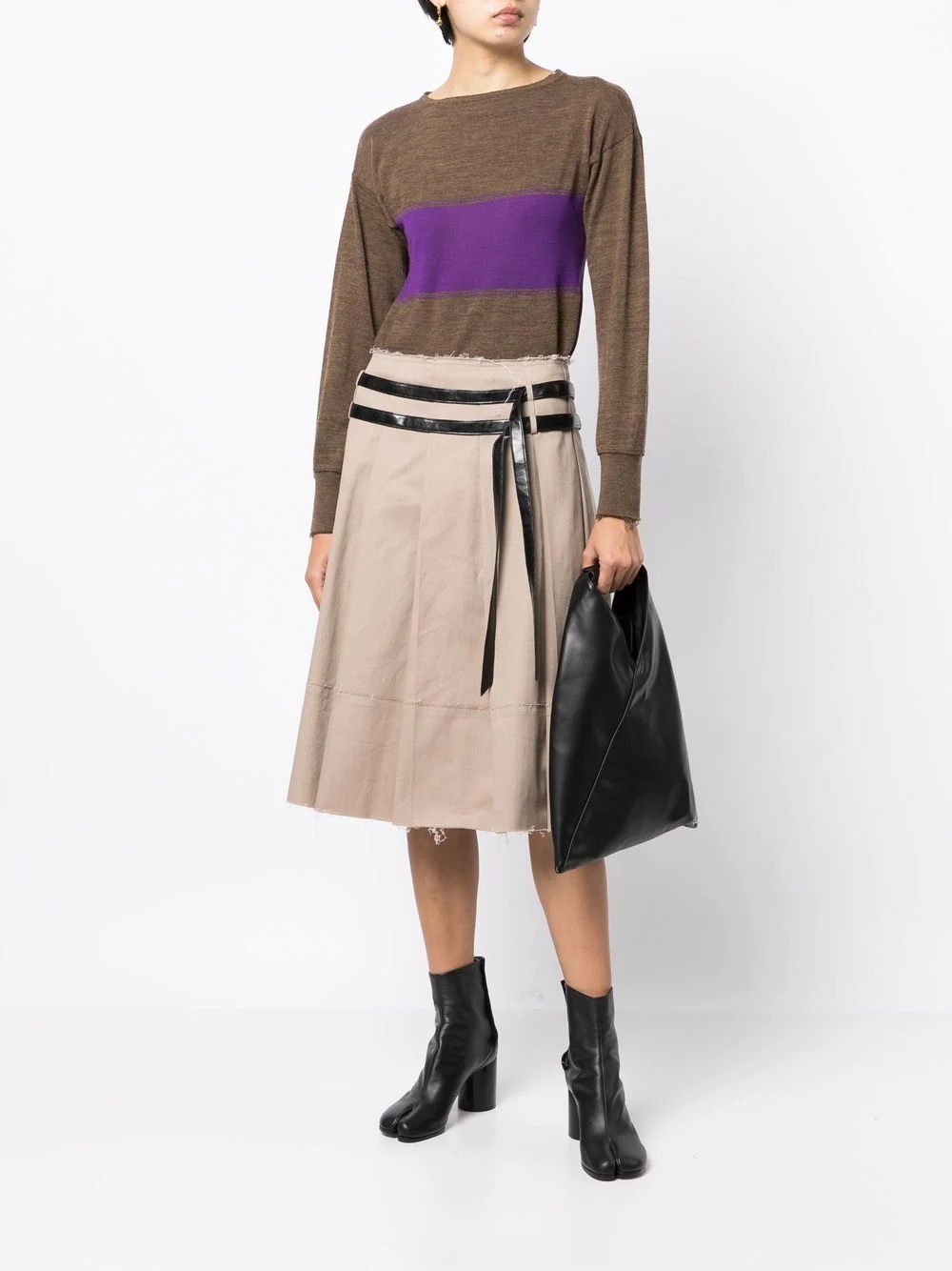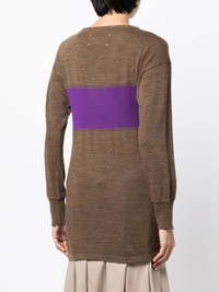 panelled round-neck jumper walnut brown/violet purple wool blend panelled design round neck long sleeves straight hem Made in Italy Composition Body: Wool 72%, Polyamide 18% SIZE & FIT Model measurements Height 5 ft 10 in(1.77 m) Bust/Chest 31.49 in(80 cm) Hips 35.43 in(90 cm) Waist 25.19 in(64 cm) FittingInformation This piece fits true to size. We recommend you get your regular size Cut for a slim fit Made with a mid-weight fabric Washing instructions Machine Wash